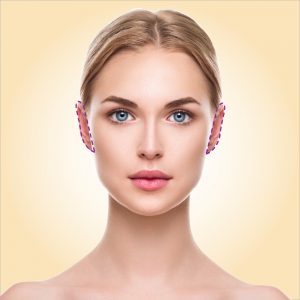 Tratamento dos pelos da a região da orelha, conforme mostra o desenho.
